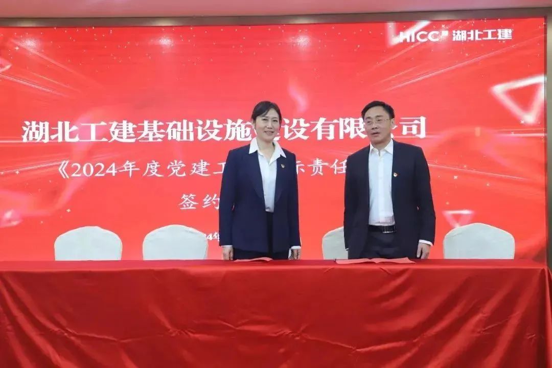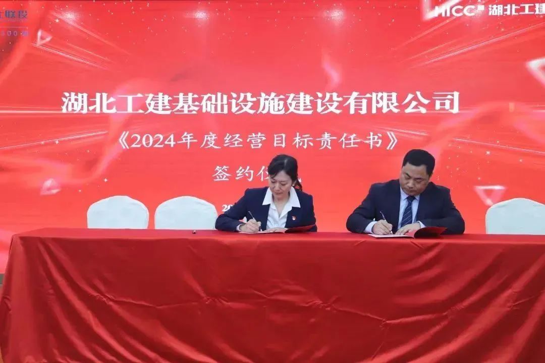 會議還組織了簽約儀式,馮文漫與支部書記代表簽訂《2024年度黨建工作目標責任書》,與黨委副書記、執行總經理潘誠文簽訂《2024年度經營目標責任書》。潘誠文與項目經理代表簽訂《2024年度平安建設工作目標責任書》《2024年度安全環保工作目標責任書》《2024年度施工產值責任書》。